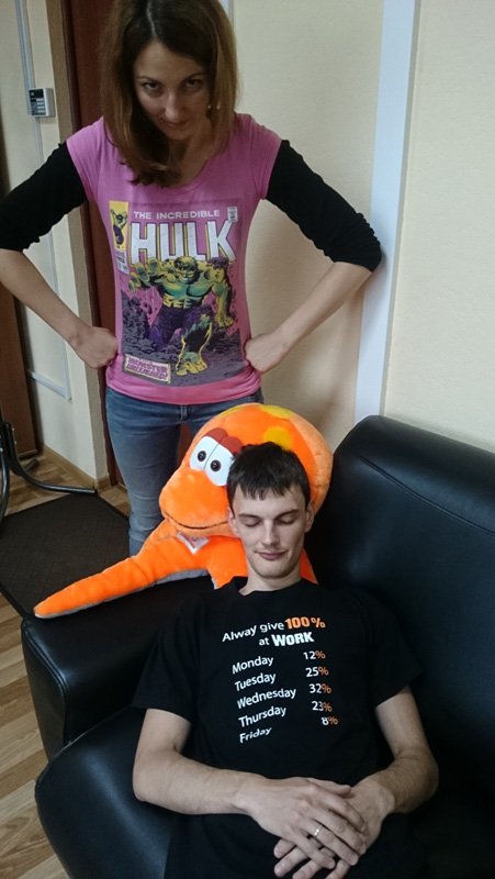В стране OCS не принято грустить, даже если за окном лето не лето! В пятницу 17-го июля сотрудники компании устроили веселый футболочный флешмоб: яркие смешные футболки радовали глаз и поднимали настроение весь день!