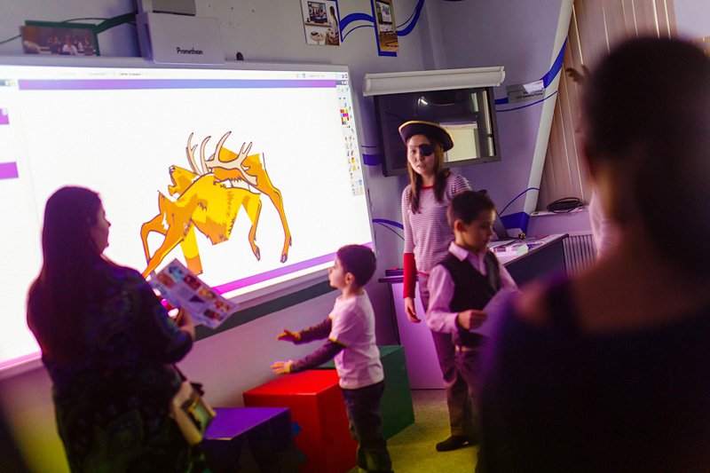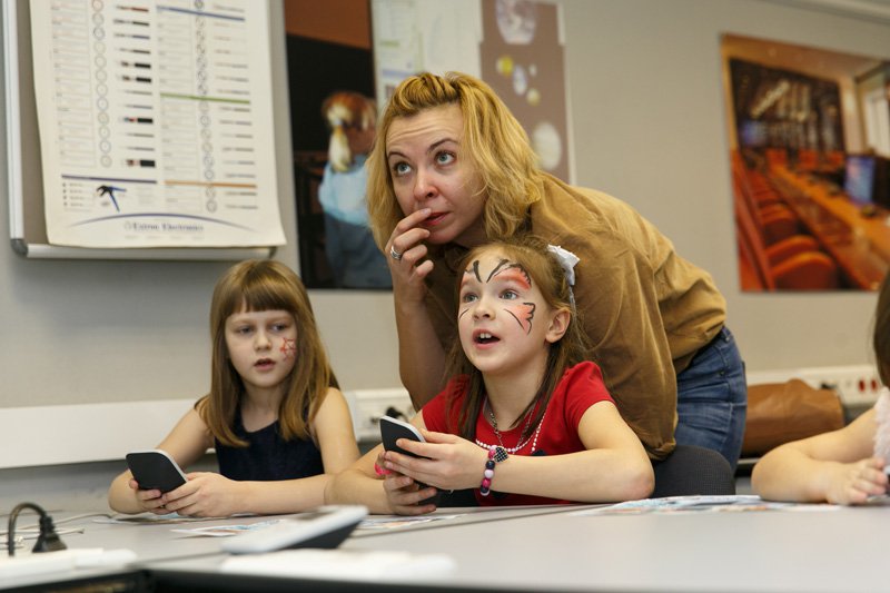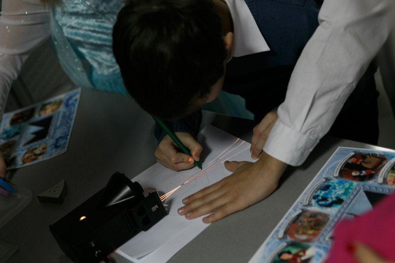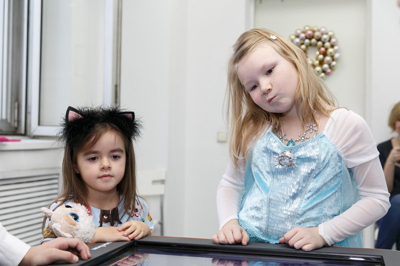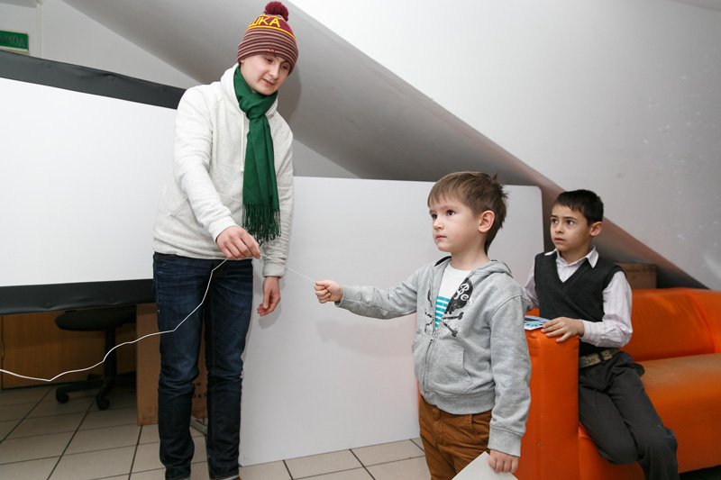 С помощью многочисленных интерактивных мультимедийных гаджетов, девайсов и лабораторий, которыми буквально напичкан офис Polymedia, родители и дети выясняли, почему Кай с сердцем изо льда такой недобрый, какого розе, кактусу и рыбке в саду у цветочницы, отгадывали загадки принцессы, которая нашла осколок в своем королевстве и ради забавы оставила его себе. Тем, кто попал в логово маленькой разбойницы, не повезло больше всех, потому что им пришлось вслепую собирать пазл на интерактивной доске и налаживать контакт с роботом-оленем, которого выкрала разбойница. В гостях у фина тоже было непросто: нужно было с помощью набора по геометрической оптике PASCO и источника света помочь хозяину дома сделать идеальную снежинку. А когда подошел черед дома бабушки и Герды, то всем пришлось потренироваться в устном счете и грамматике русского языка, несмотря на уже дымящиеся к этому времени мозги.