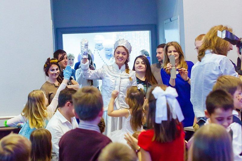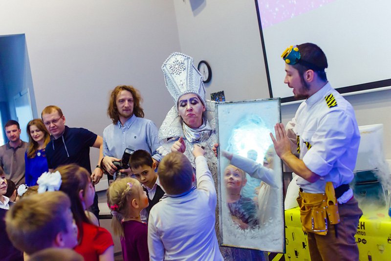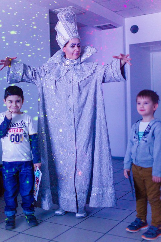 Около 10:30 в холл офиса ворвалась Снежная Королева и объявила всем, что от злости на разбитое на тысячу осколков зеркало, она заточила Деда Мороза и забрала у детей праздник.
