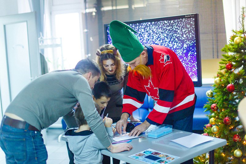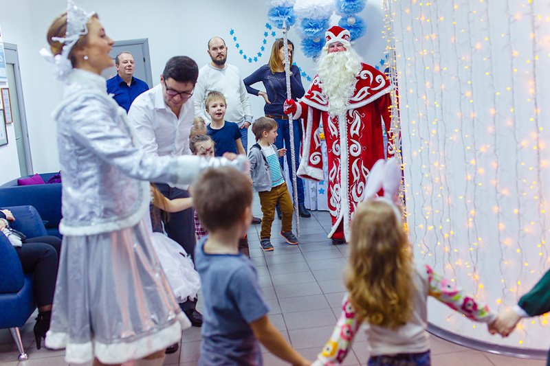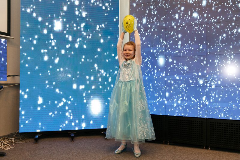 Не менее стремительная, но добрая и самоотверженная Герда поспешила на помощь ребятам, предложив им с родителями пройти увлекательный квест по Снежному королевству-офису компании в поисках тех самых осколков, чтобы собрать зеркало и выручить Деда Мороза.
