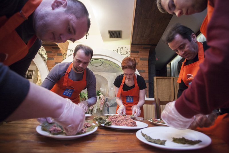 Традиционно на выездных сессиях компания «ВТТ» предлагает партнерам обширную экскурсионную программу. Вот и на этот раз поездка выдалась интересной и насыщенной. Обзорная экскурсия по Еревану, пикник на высокогорном озере Севан, посещение монастыря Хор-Вирап, откуда открывается восхитительный вид на Арарат и монастырь Татев, подъем к которому осуществляется по самой длинной канатной дороге. Отдельная экскурсия была посвящена поездке в город-курорт в Вайоцдзорской области Армении — Джермук с посещением источников с минеральной водой и знаменитого водопада. Увлекательной частью программы стал организованный мастер-класс по приготовлению армянской толмы, на котором были раскрыты маленькие секреты этого кулинарного блюда, и участники могли их применить в командном соревновании.