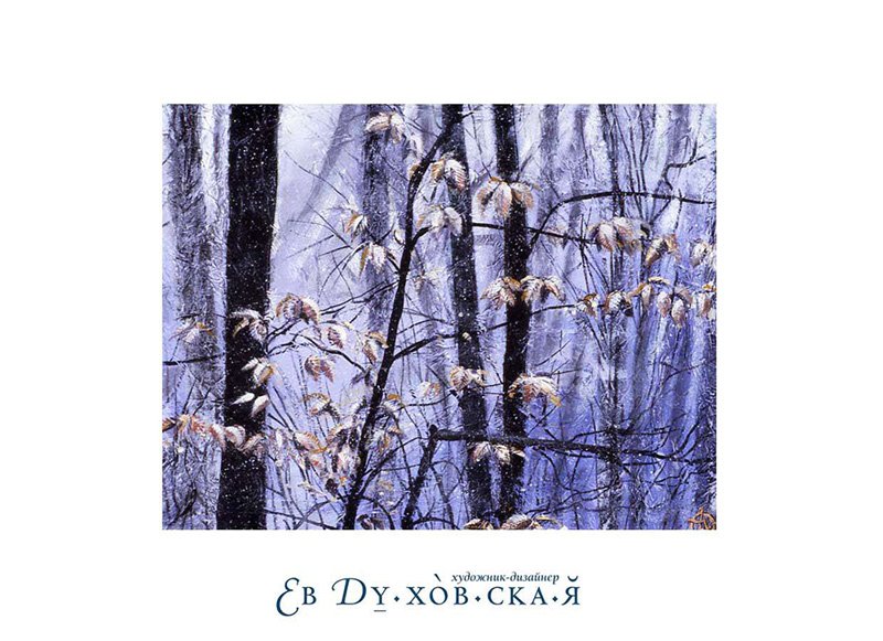 Евгения Духовская родилась и выросла в Москве. С детства любила выражать свою индивидуальность через искусство. Студенческие годы провела в США, где изучала изобразительное искусство. Получила специальность дизайнера-графика в одном из вузов Сиэтла. Творчество Евгении трудно отнести к какому-либо конкретному направлению в современном искусстве. Стиль ее произведений ярко индивидуален. Евгения пробовала разные техники — от традиционного рисунка пером до живописи на дереве, от простой гуаши до выжигания на дереве. Так, не привязываясь к одному материалу, создавала она свой собственный изобразительный язык.