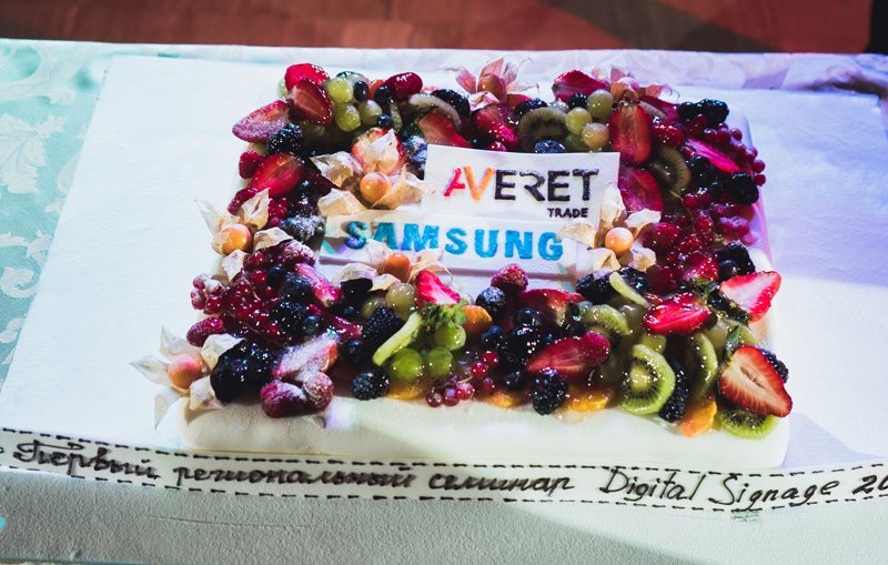 Вечерняя часть семинара началась викториной «вопрос-ответ». Партнеры задавили вопросы компании SAMSUNG, по итогам 6-ть участников получили призы. На ужине у гостей была возможность пообщаться с представителями компаний, обсудить интересующие темы и укрепить партнерские отношения. Банкет сопровождался танцевальной шоу программой и фирменным тортом AVERET Trade и SAMSUNG.