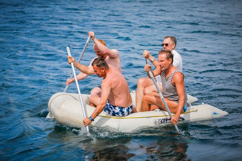 Следующей точкой маршрута стал остров Тилос — родина доисторических слонов (это не шутка, они действительно тут жили!), а дальше яхты взяли курс на Нисирос. Здесь мореплаватели сделали остановку, исследовали остров на квадроциклах и даже побывали в кратере действующего вулкана. Впрочем, извержения не видели — оставаясь активным, вулкан не извергается вот уже семь веков, хвала Гефесту. Зато Посейдон показал характер: внезапный шторм не только отменил заплыв на надувных шлюпках-«тузиках», но и заставил внести коррективы в маршрут. Завершали регату в бухте Родоса. Все экипажи проявили такой азарт и волю к победе, как будто и не было позади долгих миль изнурительной гонки!