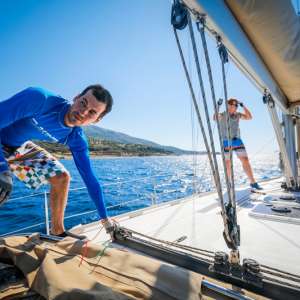 И вот яхты пришвартованы, лидеры состязаний получили заслуженные медали, скоро пора в путь — теперь «из грек в варяги». До свидания, теплое море, острова, пропахшие кипарисами и пряными травами, белые домики, южное солнце! Уезжая, участники увозили с собой целый багаж впечатлений: как было тяжело, но здорово день за днем побеждать в честном поединке с ветром и морем, как вечерами шутили и пели, несмотря на усталость, как находили новых друзей: