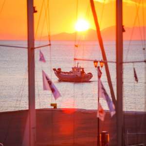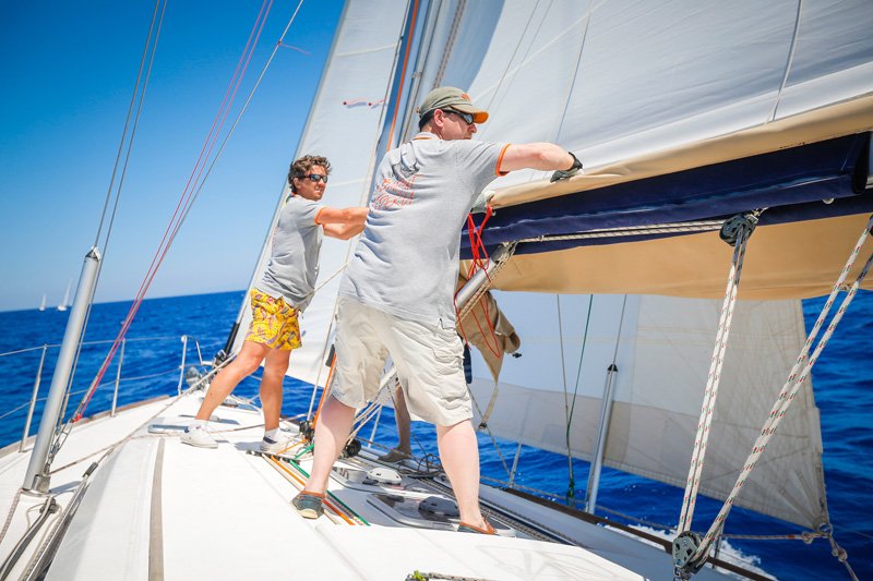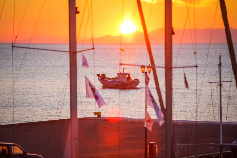 Первый этап регаты составил сразу 33 морских мили: упругий ветер, простор, соленые брызги, гудение снастей, аквамариновые волны сливаются на горизонте с синевой неба. Пункт назначения — островок Халки, самыми первыми обитателями которого по преданиям были могущественные титаны. И словно в награду за напряженный день — невероятной красоты закат, когда понимаешь, почему Гомер называл Эгейское море «виноцветным».