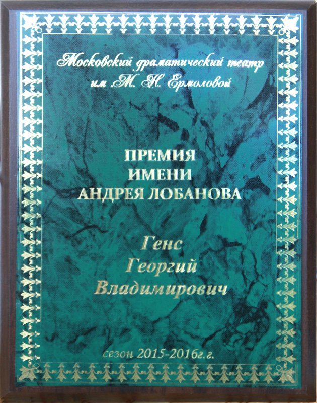 Георгий Генс был удостоен почетной награды в номинации «За событие вне Ермоловского театра». Памятный знак и диплом президенту ЛАНИТ был вручен 31 августа на сборе труппы в начале нового 91-го театрального сезона.