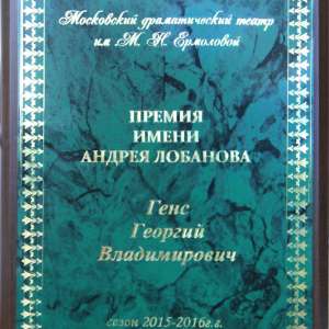 Художественный руководитель театра Ермоловой Олег Меньшиков: «Премии „За событие вне театра“ удостаиваются люди, не работающие в нашем театре. Эту награду уже получили режиссер Николай Лебедев за фильм „Легенда № 17“, выдающий драматург Леонид Зорин, а теперь мы бы хотели вручить премию Георгию Генсу. Без помощи группы компаний ЛАНИТ и лично Георгия Владимировича на нашей сцене не состоялись бы спектакли „Портрет Дориана Грея“, „Адам и Ева/Шейпинг“, не было бы „Счастливчиков“. Не было бы четырех экранов, выходящих на Тверскую, не появился бы киноклуб, который мы продолжим развивать и в этом году. Благодарю за поддержку наших начинаний».
