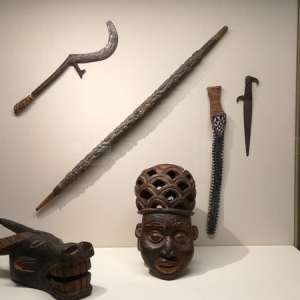 На экспозиции представлено 29 произведений искусства стран Африки конца XIX — начала XX века: маски-шлемы, магические, женские фигуры и фигуры плодородия, церемониальные жезлы, оружие, подвески и ритуальные предметы. Собрание этих разноплановых предметов дает возможность зрителю составить представление о традиционной культуре африканских народностей.
