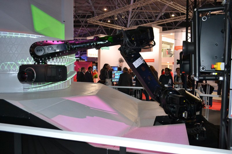 Компания Barco продемонстрировала на своем стенде комбинированную инсталляцию «ЗD-мэппинг + роботизация». 3D-мэппинг был создан четырьмя лазерно-фосфорными проекторами F90 и одной ламповой моделью HDX-W20. Изображение, созданное проекторами F90, воспринималось как целостное, без видимых переходов и разницы в цветопередаче, несмотря на то, что модель является одночиповой — технология Barco достигла такового высокого уровня, что — одночиповые проекторы справляются с поставленными задачами не хуже трехчиповых. Проектор F70, сертифицированный для работы на подвижных платформах с перегрузками до 3кг, с помощью роботизированной руки перемещался вдоль инсталляции, вращаясь на 360 градусов. Он проецировал изображение поверх 3D-мэппинга, гармонично с ним сочетаясь.