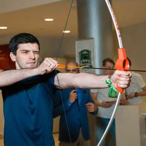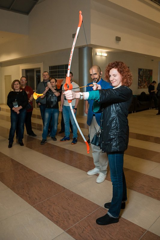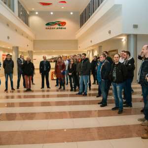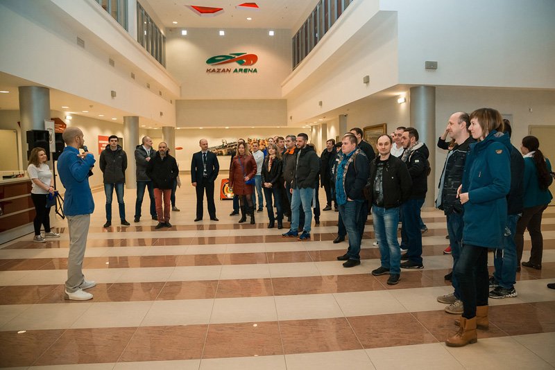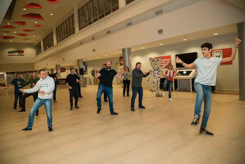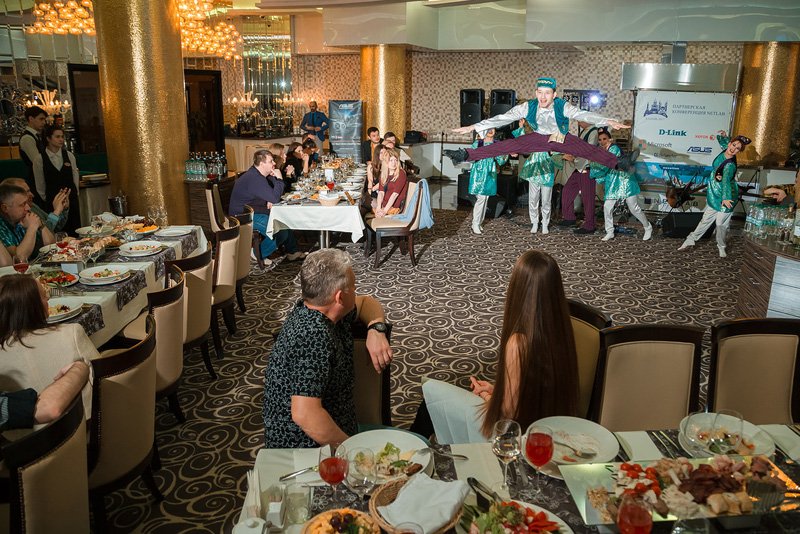 После официальной части гостей пригласили немного размяться перед вечерним банкетом — принять участие в квесте на одном из известнейших спортивных объектов Казани — «Казань Арене». Любители спорта прекрасно знают, что этот футбольный стадион является одним из объектов проведения чемпионата мира по футболу 2018 года и домашней ареной казанского футбольного клуба «Рубин». Наших же участников ждали здесь задания на логику, смекалку и немножко на физическую подготовку. Завершился квест торжественным выходом на футбольное поле и общим фотографированием. Все игроки получили памятные грамоты об участии в квесте, а победителей, команду с поэтическим названием «Зеленые лоботрясы», ждали призы от компаний D-Link и ASUS, которые и были торжественно вручены счастливым победителям во время вечернего банкета под аплодисменты зала.