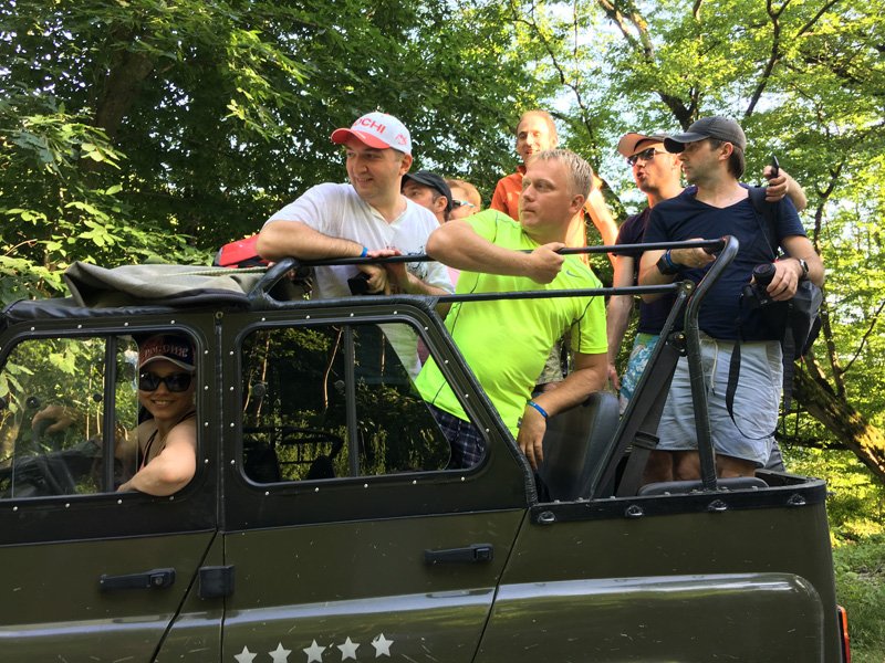 После этого партнеры приняли участие в уникальной командной активности на свежем воздухе — в экстремальном подъеме на внедорожниках УАЗ на высоту 1200 м и последующий спуск на рафтах по бурной горной реке. Весь следующий день был посвящен сложному восхождению под названием «Via Ferrata» (железная тропа, ит.): восхождение включало подъем по отвесным скалам в несколько этапов на общую высоту 340м с прохождением по горной тропе в общей сложности 1500 м. Снабженные всем необходимым спасательным оборудованием, Шинрай-партнеры наслаждались как удивительными горными видами, так и настоящим командным духом, благодаря которому, помогая друг другу, стало возможным пройти это уникальное испытание.