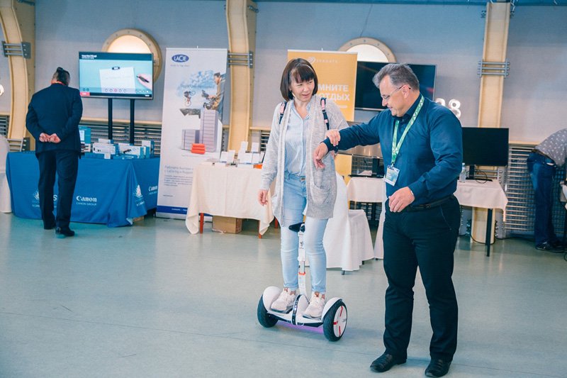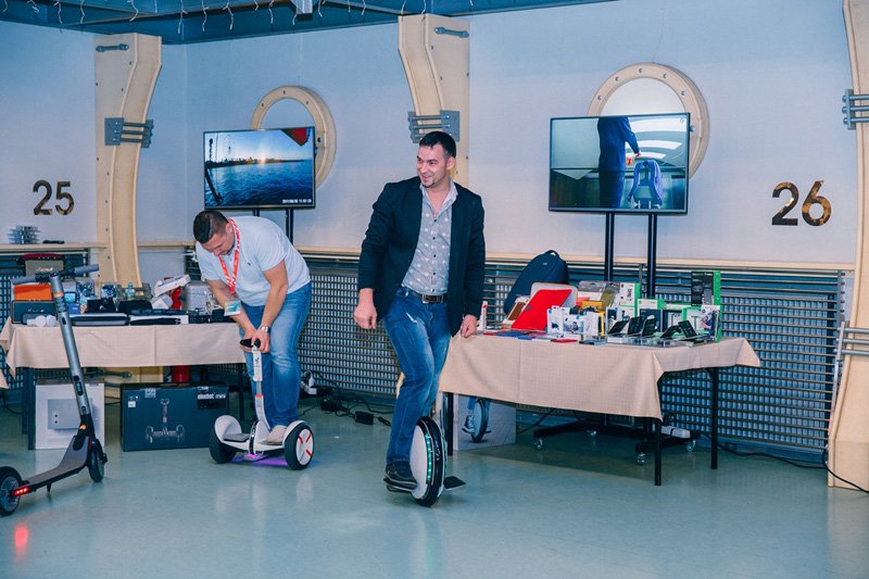 Встреча собрала более 80 участников из числа партнеров Марвел и представителей вендоров HIPER, IRIS, LAMEL, LG, Logitech, Seagate. Гости мероприятия провели значительное количество времени на демо-стендах. Самыми популярными продуктами для тестирования стало огромное количество разнообразного электротранспорта, и на какой-то момент зона деловой программы мероприятия стала напоминать шумную детскую площадку с пролетающими по ней на приличной скорости участниками на самокатах, гироскутерах и моноколесах.