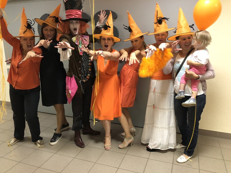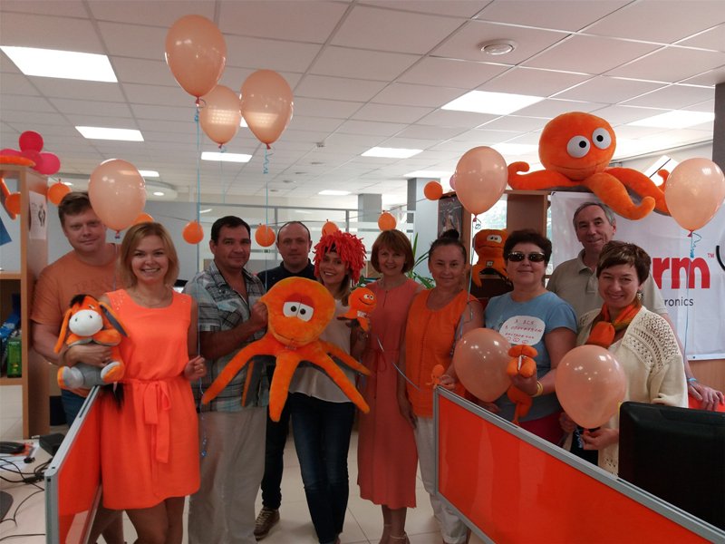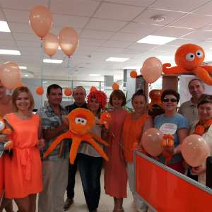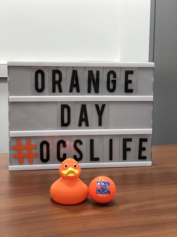 Оранжевые платья, футболки банданы, галстуки (стильные, само собой), зонтики, мандарины и яблоки, перцы и морковка, оранжевые воздушные шарики...оранжевые веснушки! И конечно, оранжевые плюшевые осьминоги, постоянные обитатели офисов OCS. Осьминог Осип, он же Ося, Осик — символ компании и ее талисман, отличается дружелюбием и оранжевым цветом.
