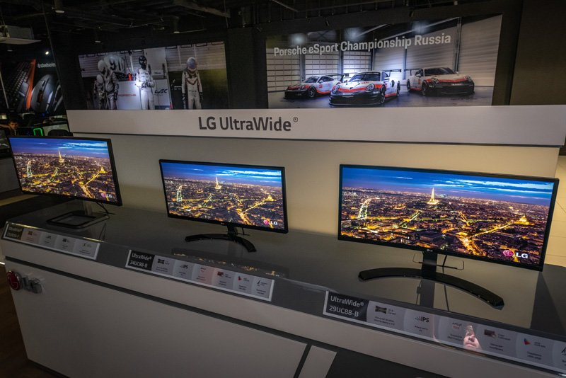 Соревнования проводились на изогнутых UltraWide мониторах LG 34UC88-B с разрешением QHD.
