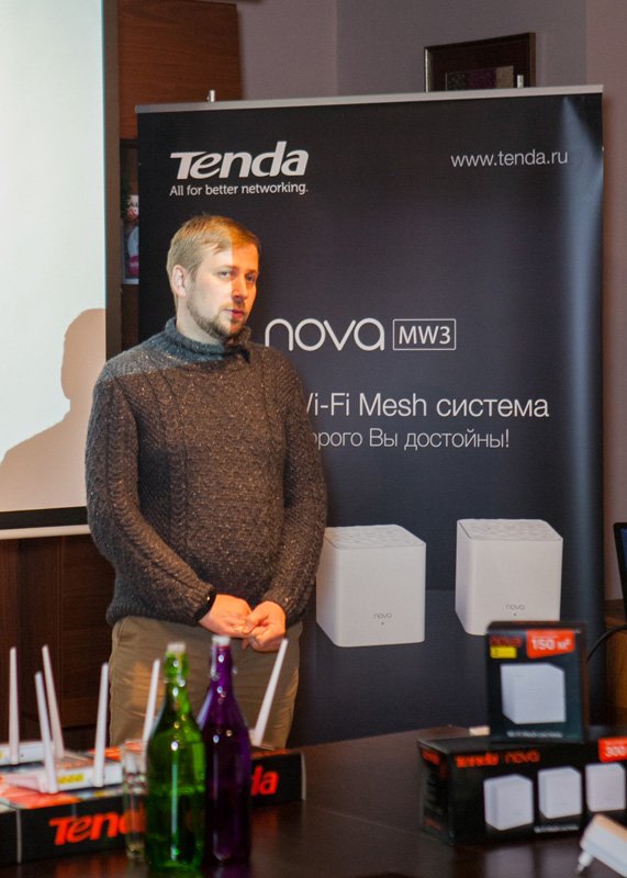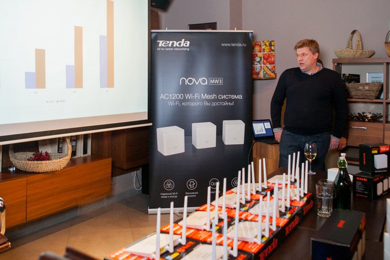 Организаторы старались провести мероприятие в формате семейного ужина за круглым столом. Во время торжественной официальной части, Директор по продажам Tenda в России и СНГ, Константин Тихонов, наглядно продемонстрировал динамику роста компании за 2018 год. В свою очередь, руководитель направлении по работе с партнёрами, Константин Иванов, рассказал о перспективах MESH технологий на рынке Wi-Fi оборудования, о новых моделях серии Tenda Mesh Nova, удовлетворяющих запросы как сегмента SOHO, так и пользователей high-end решений. После чего партнерам вручили авторизационные сертификаты, но не тривиально- бумажные, а инновационные, как и все оборудование компании Tenda.