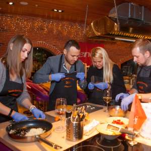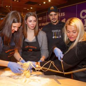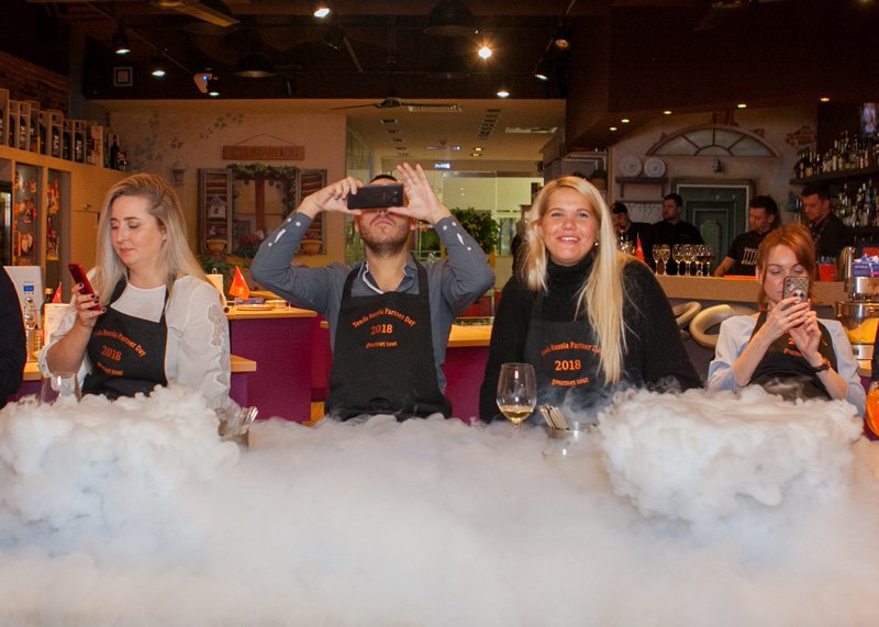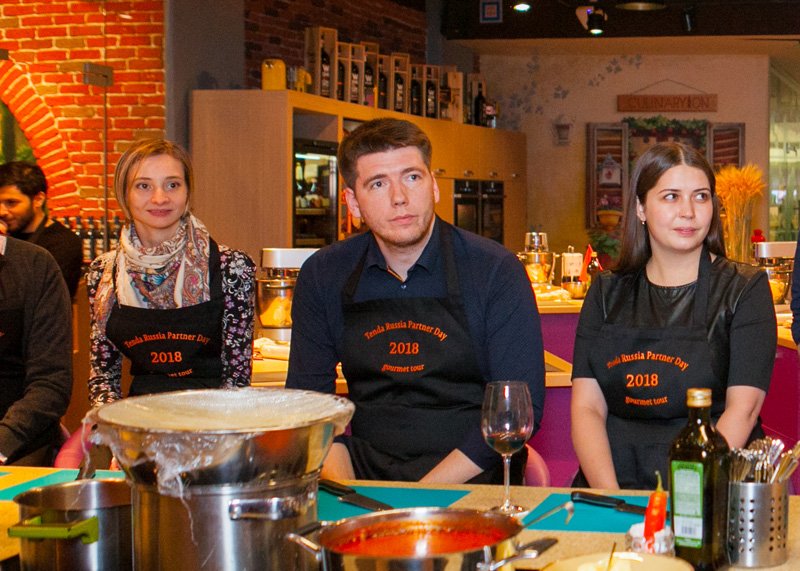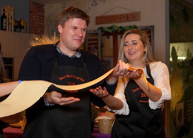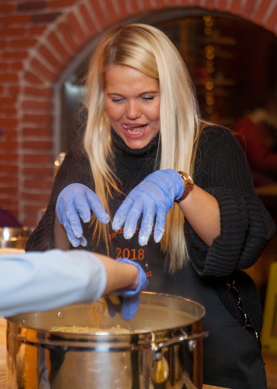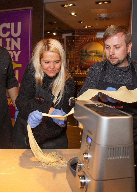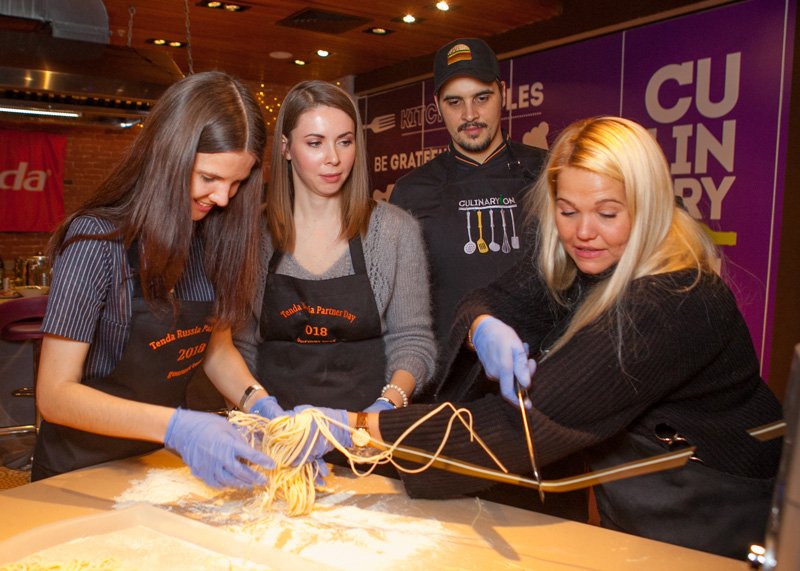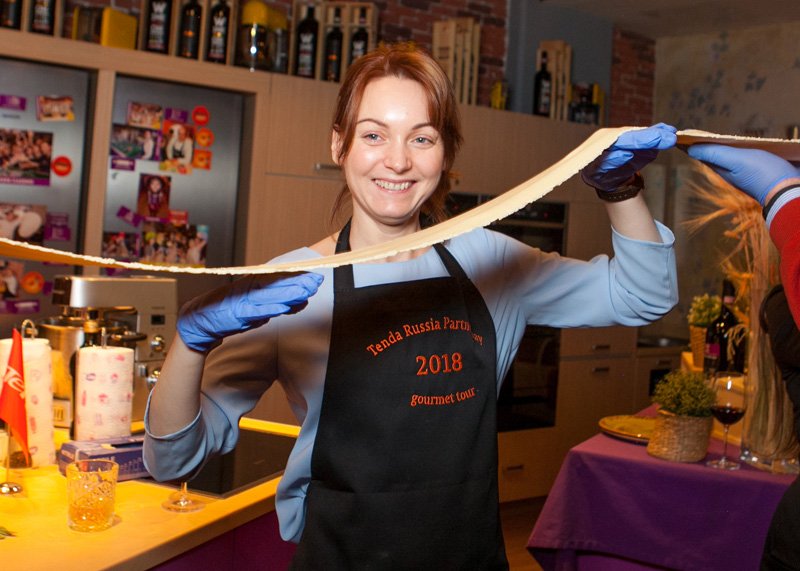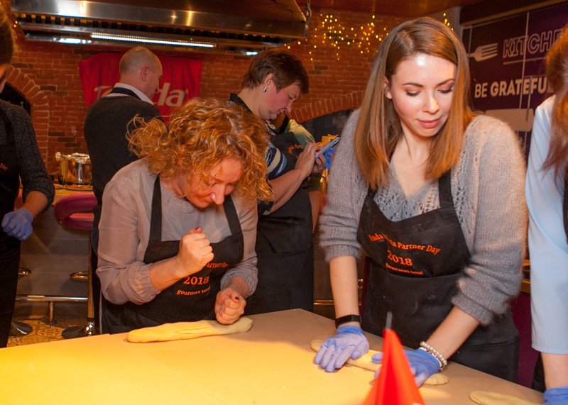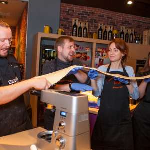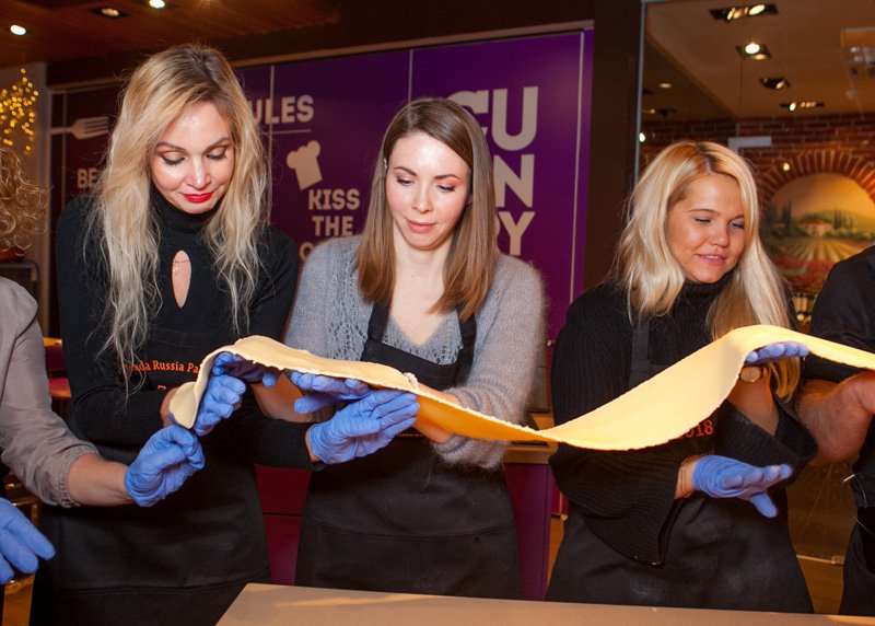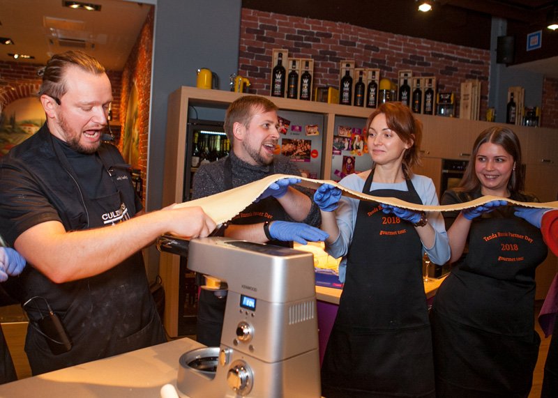 А далее... партнёры и сотрудники компании мяли, катали, тянули, отбивали, резали — одним словом «жгли» Сальтимбокку и Арабьяту, с максимальным погружением в мир итальянской кухни.