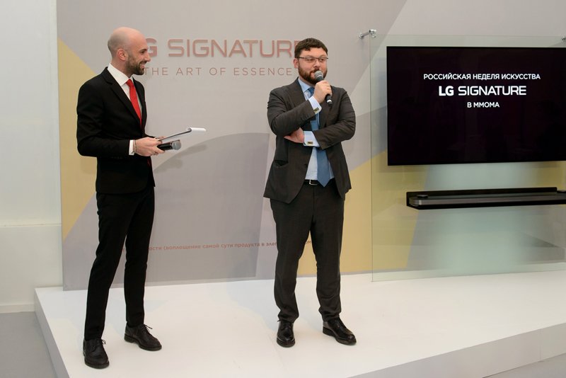 Исполнительный директор ММОМА, Василий Церетели: «LG SIGNATURE ArtWeek в ММОМА — это сочетание последних достижений в области передовых технологий и коллекции Московского музея современного искусства. Уникальный стиль выдающегося архитектора и дизайнера Алессандро Мендини, ставшим автором этой коллаборации, призван подчеркнуть эстетику минимализма и высокое качество продукции LG SIGNATURE. Произведения из коллекции ММОМА сочетаются с предметами LG SIGNATURE: в этом синтезе искусства и технологий зритель ощущает и минимализм продуктов, и многогранность шедевров. Техника LG SIGNATURE представлена в залах музея в виде своеобразных „тотемов“: рядом с работами Пиросмани, Штейнберга, Новикова, Пивоварова расположились объекты из линейки LG SIGNATURE. Российская неделя искусства LG в ММОМА призвана подчеркнуть точки соприкосновения между современным искусством и визуальной философией бренда».