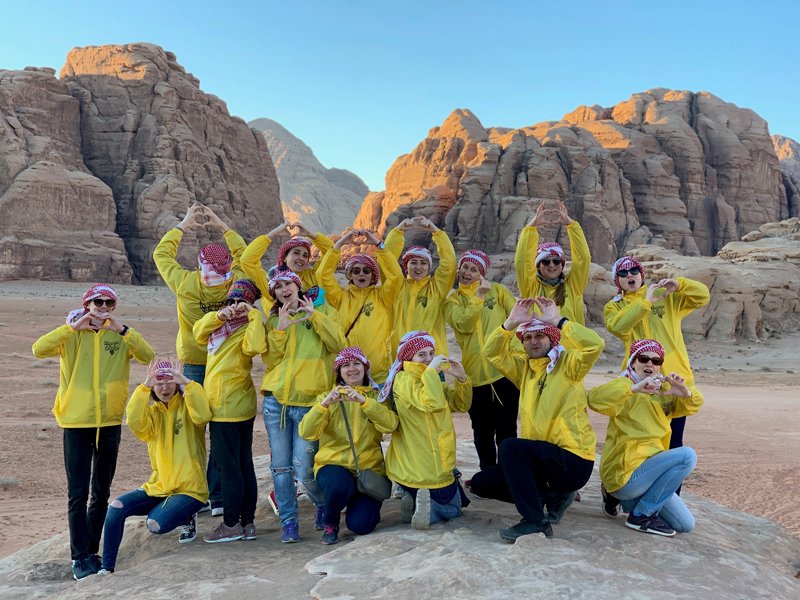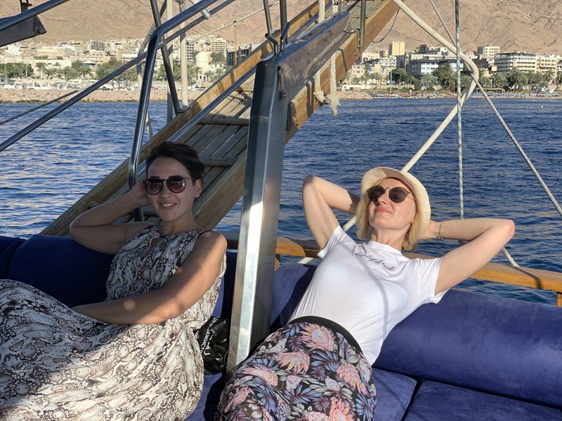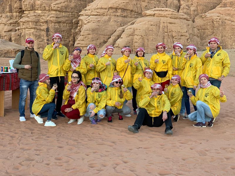 Лучше рассказов очевидцев и сделанных ими фотографий описать эту поездку сложно — не хватит слов. Потому что там было все: экскурсия на место крещения Христа, купание в священной реке Иордан, ночевка в палатках лагеря Джабал Рам и прогулки по Петре, городу, высеченному в скалах. Встретился на пути и чудесный город Амман, и «мозаичная» Мадаба, где оставили «оранжевый след» наши путешественники; и знаменитая гора Моисея, и соленое Мертвое море, где не обошлось без солнечных и грязевых ванн, беззаботного отдыха и наслаждений. А какие были прогулки на яхте по волнам Красного моря и гонки на джипах по пустыне Вади Рам на фоне невероятной красоты заката. Незабываемо!