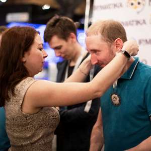 Большой неожиданностью для всех стала номинация от команды компании Труконф, которая выбрала обладателя самой роскошной бороды в зале. Счастливый победитель получил в подарок топор!