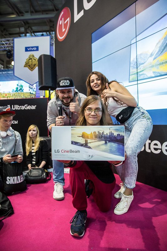 «Навигатор игрового мира», давний медиа-партнер компании LG, представили легендарных ведущих популярной программы «ОТ винта!» В свойственной и характерной манере, кумиры нескольких поколений рассказали о своем видении сегодняшнего киберспорта, провели увлекательную викторину, разыграли среди гостей стенда игровой монитор и приняли участие в фото-сессии.