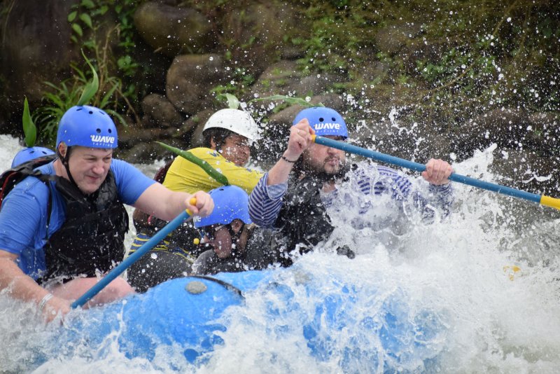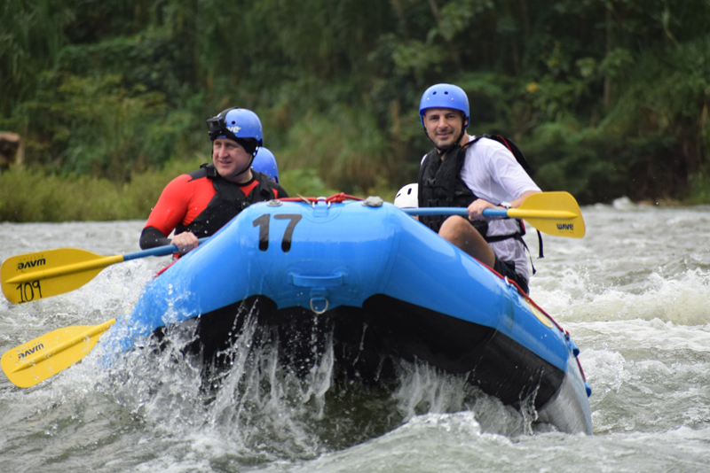Для того чтобы поиски костариканского счастья проходили еще интереснее, участники поездки добавили себе немного адреналина. Сначала промчались с ветерком по натянутым стальным тросам зиплайна. Каждый смог преодолеть себя и свой страх, пройдя спуск по семи линиям среди джунглей с видами на водопад. Затем их ждал не менее захватывающий рафтинг по реке Бальса. Выйти сухим из воды никому не удалось. Завершили это приключение коллеги мокрыми, но довольными.