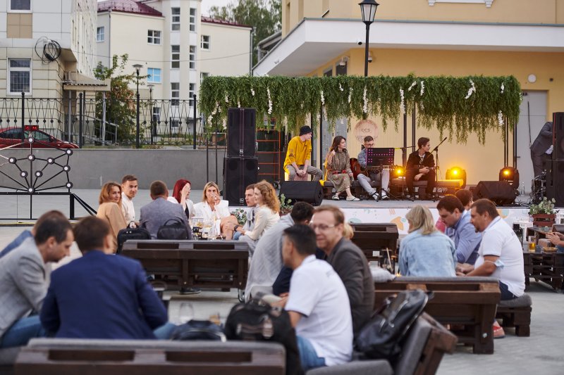 Неформальная часть мероприятия началась с гастрономического фестиваля Уральской кухни, который прошел под аккомпанемент музыкальных энтузиастов «Песни у костра» и победительницы шоу «Голоса Екатеринбурга» Ксении Куминовой. Музыканты предложили всем гостям петь вместе с ними — это сблизило участников мероприятия, помогло расслабиться и прочувствовать настроение. Такая развлекательная программа стала прекрасной компенсацией скромному ассортименту летних фестивалей «новой реальности» — если в прошлом году всем не хватало живого общения, то в этом году — живых танцев и музыки.