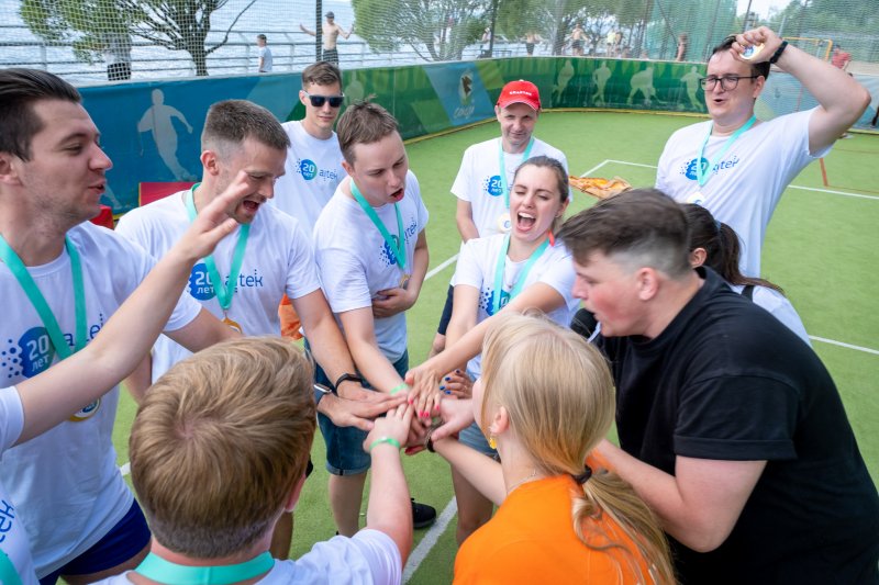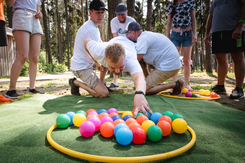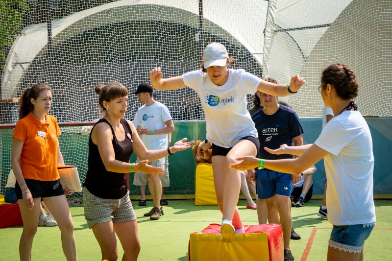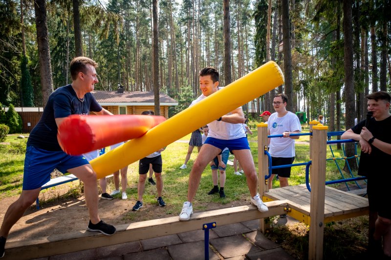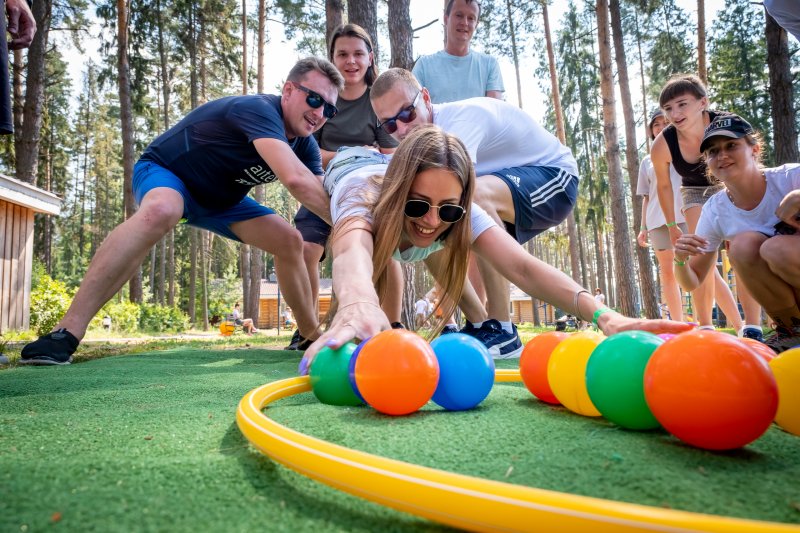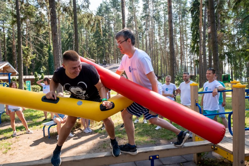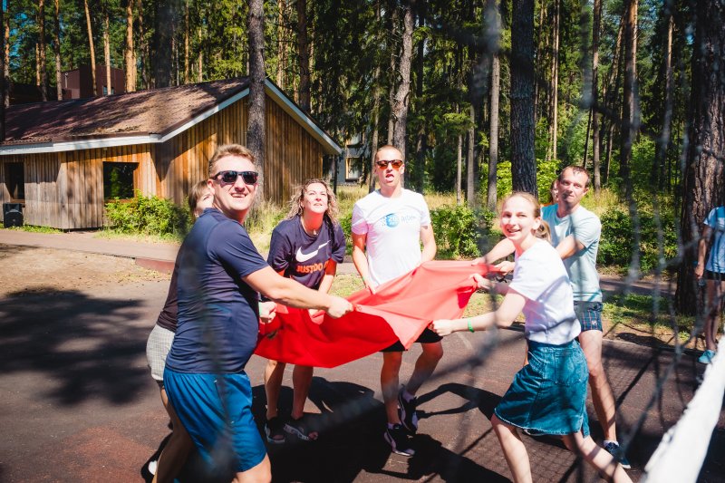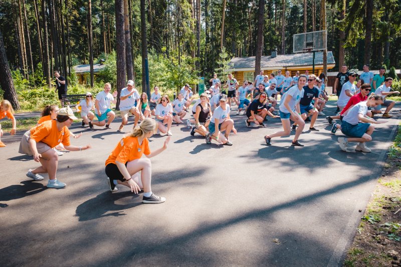 На следующий день всех ждали бодрая зарядка и программа тимбилдинга на свежем воздухе.