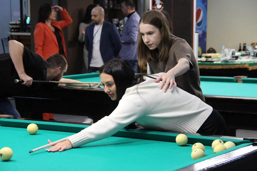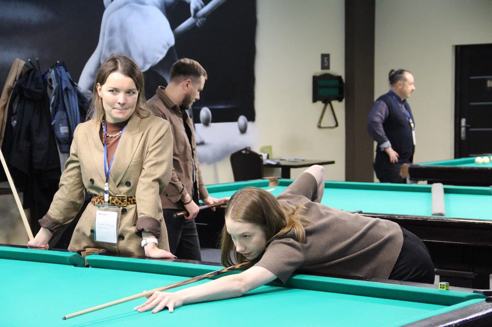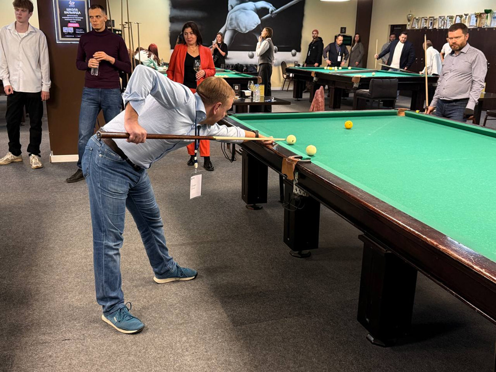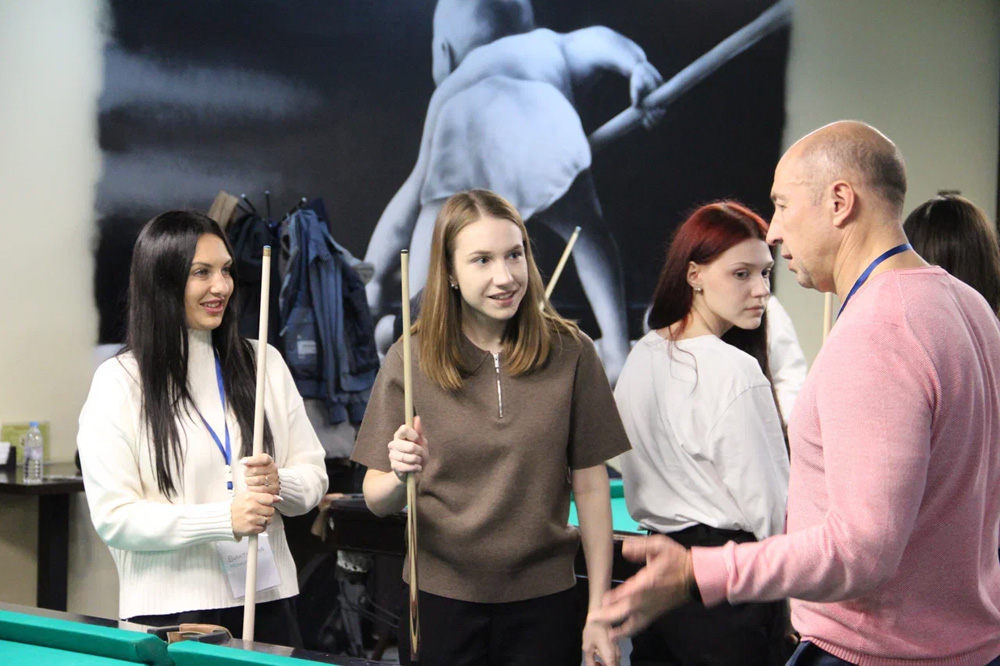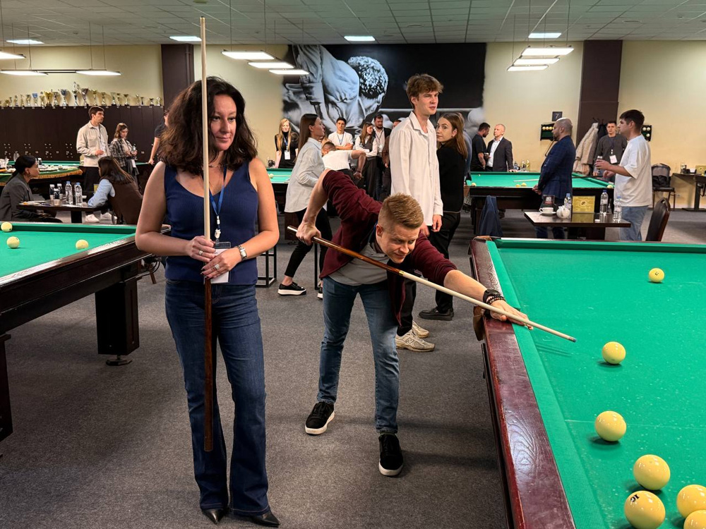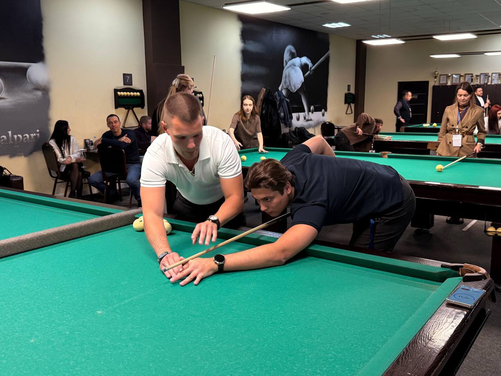 Событие стало настоящим праздником для всех участников: даже новички, не державшие кий в руках, получили уникальный опыт благодаря мастер-классу от чемпиона России и мастеров спорта международного класса. Под чутким руководством профессионалов гости освоили идеальную стойку, научились точно нацеливаться и ловко отправлять шары в лузы — словно в настоящем поединке чемпионов.