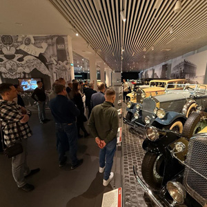 Мероприятие началось с впечатляющей экскурсии по экспозициям музея. Участники смогли увидеть самую большую в России коллекцию ретро-автомобилей, проследив более чем