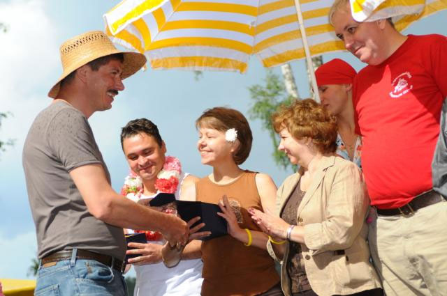 Все пришедшие гости были разделены на 4 гавайских племени (арики-рака -аристократы, тонгата-хонуи -советники, мататоа - воины и маори – ремесленники и искусствоведы) и в течение всего праздника соревновались между собой, участвуя в различных конкурсах и активностях и получая за это кокосы. По окончании праздника набранные участниками кокосы были обменены на различные призы.