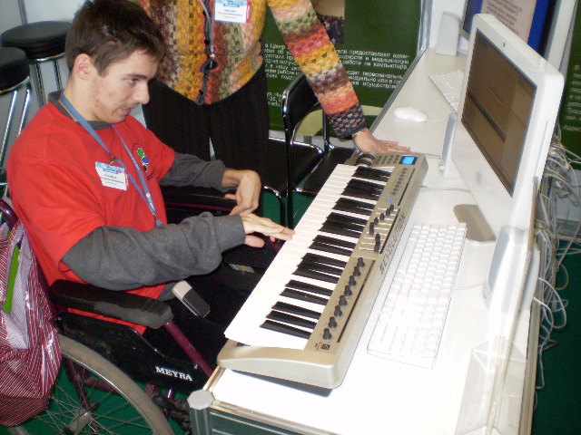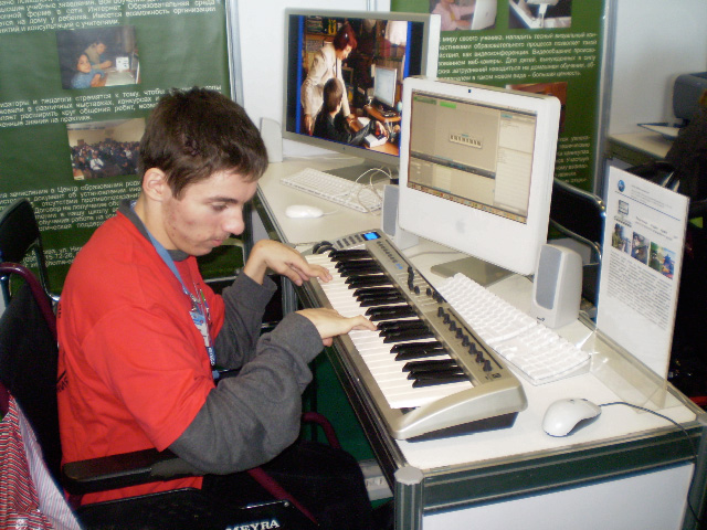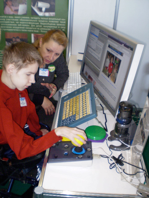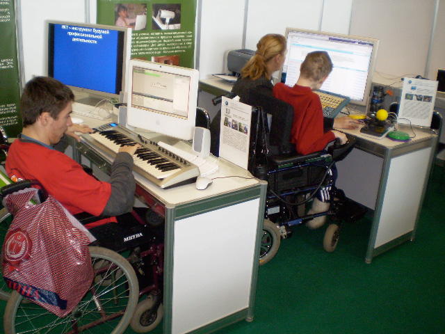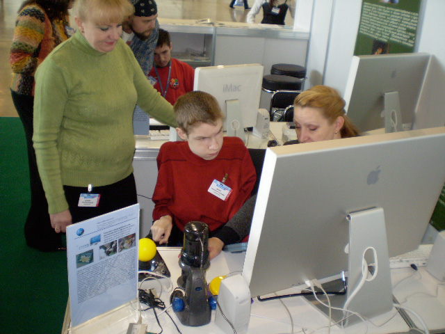 Для посетивших экспозицию детей-инвалидов и их родителей сотрудниками iШколы Центра образования «Технологии обучения», созданной Департаментом образования города Москвы для дистанционного образования детей c особыми потребностями, были проведены обучающие мастер-классы по работе с решениями на базе компьютеров Apple для людей с ограниченными возможностями. Передвигающиеся на колясках ребята получили возможность попробовать в действии специальные технологии и оборудование, позволяющие обеспечить взаимодействие между учеником и преподавателем с помощью ИКТ – увеличенную клавиатуру, роллер-джойстик, выносные кнопки для управления компьютером ногами или головой – без помощи рук, графический планшет, музыкальную миди-клавиатуру.
