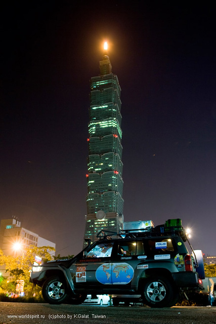 7-ой этап кругосветной экспедиции на внедорожниках World’sPIRIT проходил по Тайваню с 16 по 20 октября 2008 года. Протяженность этапа – около 500 км. Экспедиция стартовала в Москве 3 августа 2008 года и до начала тайваньского этапа прошла по России, Монголии и Японии более 16 тысяч километров.