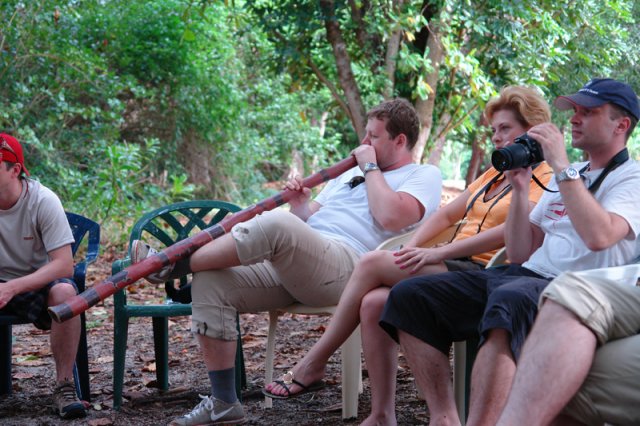 В последний вечер состоялся незабываемый ужин в джунглях, где аборигены показывали огненное шоу и играли на традиционных музыкальных инструментах.