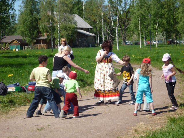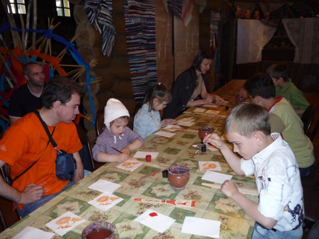 В Питерском офисе для детей было организовано выездное развлекательное мероприятие. Дети с родителями отправились в субботу в «Русскую деревню Шуваловку», где и ребят, и взрослых ждала увлекательная интерактивная программа с собственноручным кованием гвоздей, изготовлением соломенных кукол, росписью деревянных предметов быта и разнообразными играми на свежем воздухе с поеданием горячих русских блинов.