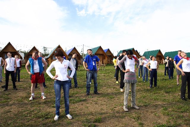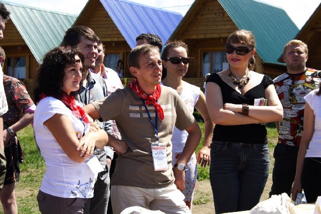 Вернуться в атмосферу пионерского лета помог формат мероприятия. Все участники были разделены на 5 отрядов, каждому выдали отличительного цвета галстуки/банданы. Вожатые отрядов не только заботились о своих «подопечных», решая организационные вопросы, но и вдохновляли ребят на различные подвиги. Утро начиналось с раннего подъема в 8, и энергичной зарядки на свежем воздухе и под голос диктора: «Поставьте ноги на ширине плеч…» В вечерней программе – кефир, конкурсы, песни у костра («Грушинский фестиваль»), и просто неформальное прямое общение с коллегами.