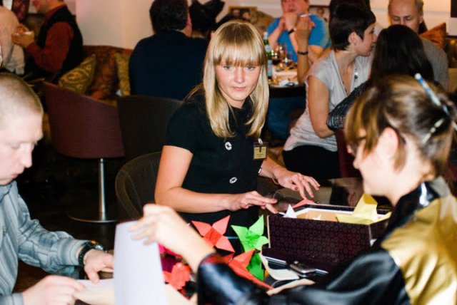 После официальной части, как и полагается, следовала часть развлекательная. Гости имели возможность прикоснуться к старинному японскому искусству оригами, пофантазировать над костюмом гейши и, конечно, сложить хокку про компанию Sony. Участники блестяще справились с этой задачей. Cам Мацуо Басе мог бы позавидовать одаренности участников.