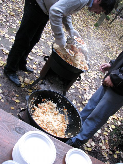 Прибыв на место и подкрепившись настоящим узбекским пловом на свежем лесном воздухе, 120 человек команды MICS после приветственного слова генерального директора Владимира Лисогорского разбились на группы, чтобы принять участие в командных играх с элементами экстрима. Три часа, отведенные организаторами на «Межгалактические Чрезвычайные Соревнования», пролетели как миг, настолько увлекательно и интересно прошла эта часть праздника. Участникам соревнований пришлось преодолевать «зыбучие» инопланетные пески, всей командой сохранять баланс в «невесомости», переправиться и доставить воду с одной «летающей платформы» на другую, не расплескав ни капли, с закрытыми глазами пройти по «Млечному пути», осуществить мягкую стыковку «летательного аппарата», испытать пьянящее чувство полета в прыжке с 17-метровой высоты (со страховкой:)) и не забыть при этом «земной алфавит»…. Каждое новое испытание раскрывало сильные стороны и способности каждого члена команды и укрепляло командный дух во имя достижения общих целей…