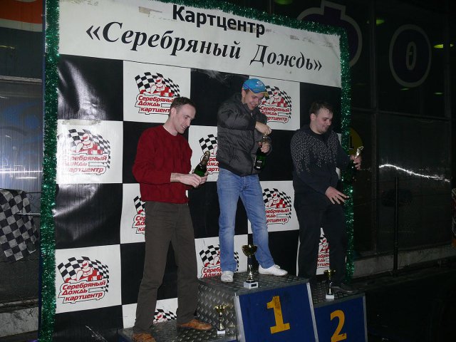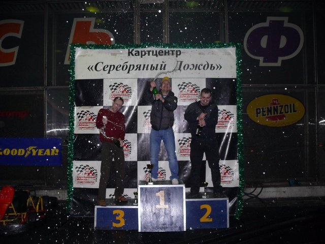 Гонка завершилась настоящим награждением на пьедестале почета с кубками и брызгами шампанского!