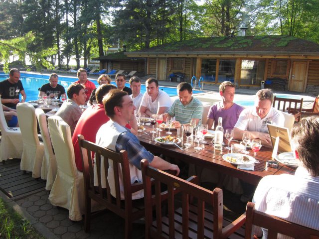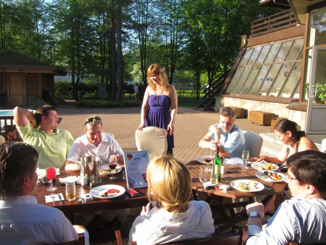 Первый день встречи порадовал прекрасной погодой, создавая ощущение теплого летнего настроения. Непринужденная атмосфера общения возникла уже с первых часов встречи. Разместившись в отеле и пообедав в уютном ресторане загородного клуба, собравшиеся перешли к небольшой деловой части мероприятия, которая прошла в бизнес-центре отеля.