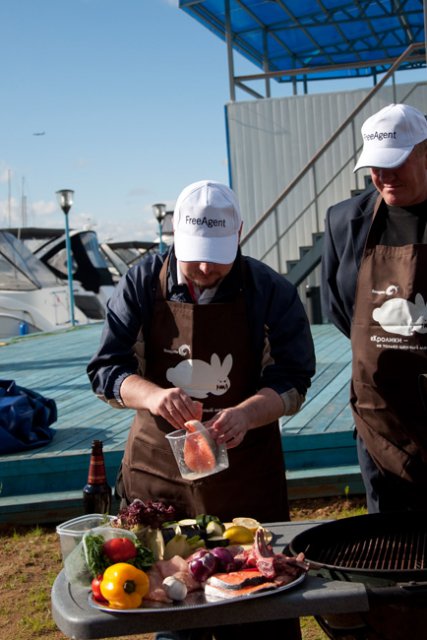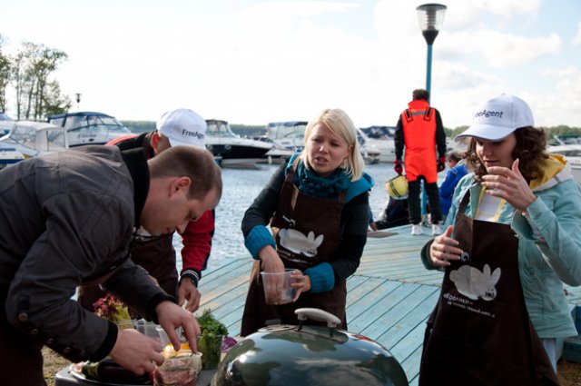 Помимо азартных парусных гонок, участники мероприятия попробовали свои силы в приготовлении исконно американского блюда – барбекю. Барбекю готовили на берегу живописного водохранилища под лучами теплого июньского солнца. Участники разделились на команды, каждая группа получила одинаковый набор ингредиентов и мангал. Команды готовили мясо, рыбу и птицу. Шеф-повар столичного ресторана «Амстердам» Артем Храмцов определил лучших кулинаров по итогам дегустации: