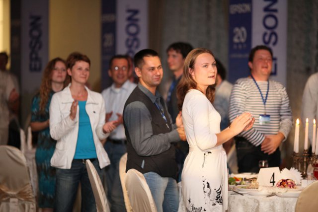 Торжественный гала-ужин начался с сюрприза: короткую приветственную речь глава московского представительства Epson г-н Ямамото Казуйоши завершил исполнением российского гимна акапелла, вызвав бурную поддержку со стороны всех гостей. Помимо этого, каждому гостю была вручена именная грамоты за сотрудничество с Epson, а закончился вечер оригинальным выступлением искусного коллектива «Джаз-балалайка» и лазерным шоу.