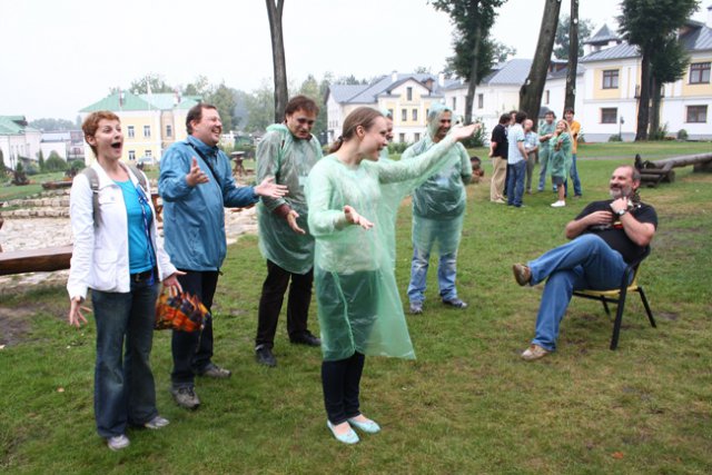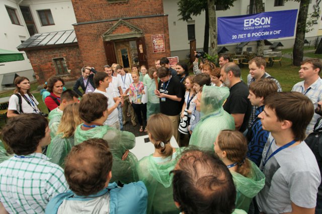 Славный город Суздаль встретил гостей ливнем, но активная программа и теплота общения с коллегами и представителями Epson с лихвой компенсировали капризы погоды. Программа мероприятия состояла из небольшой официальной и развернутой развлекательной частей. Презентация 20-летних достижений компании продолжилась командным гео-кэшингом по Суздалю: гостям было предложено совместить просмотр местных достопримечательностей с выполнением креативных заданий, связанных с историей города, с историей Epson, а также с замаскированной в самых неожиданных местах техникой компании.