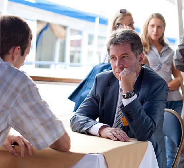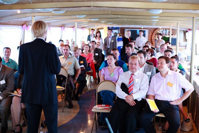 В речную прогулку под флагом РДТЕХ отправились шестьдесят человек. До отплытия теплохода гостей ждал лёгкий фуршет, ознаменовавший начало мероприятия, а сразу после Александр Цыплихин, руководитель Отдела по работе с партнёрами, пригласил всех занять места в импровизированном конференц-зале.