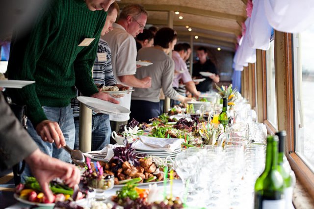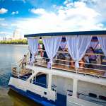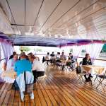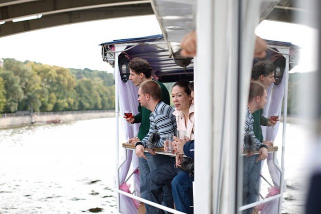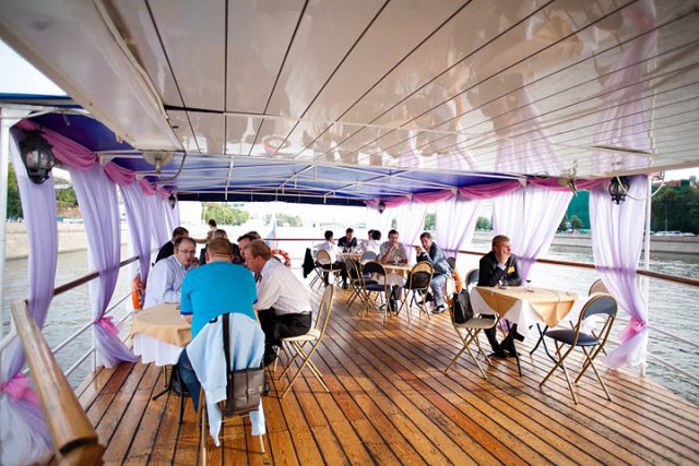После часовой, информационно-насыщенной части программы, участники начали неформальное общение за праздничным ужином. Речную экскурсию сопровождала живая музыка - сюрпризом для гостей стало выступление саксофониста, репертуар которого состоял из классических композиций и современных мелодий.
