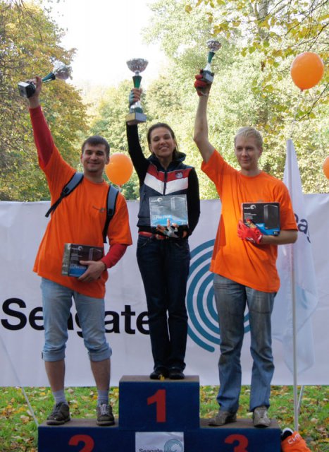 Всего в велопробеге участвовали более 30 человек. Несмотря на то, что победителями стали только трое из них, каждый участник получил свой полезный и приятный подарок. Заслуженные же призы победителям вручал представитель компании Seagate, который поблагодарил всех «велогонщиков» за их активность, энергичность и хорошее настроение.