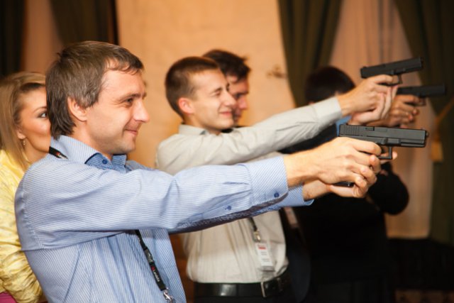 После деловой части Конференции, партнеры приняли участие в необычной развлекательной программе. Для партнеров Landata были проведены состязания по стрельбе в мультимедийном пневматическом 3D-тире, где на участников надевались специальные 3D-очки а стрельба велась по мишеням на большом сенсорном экране. Помимо этого, каждая команда выбирала свой «талисман», относящийся к теме стрельбы и воплощала его посредством боди-арта на теле одной из девушек-моделей.
