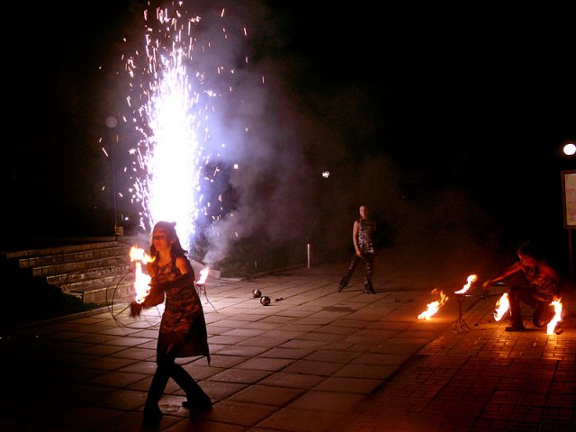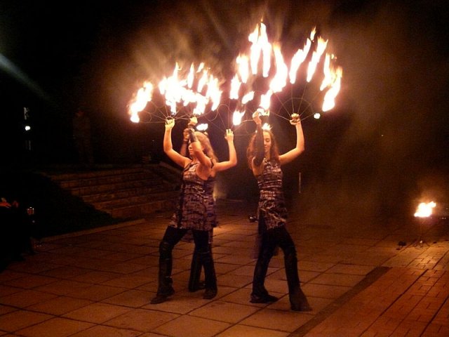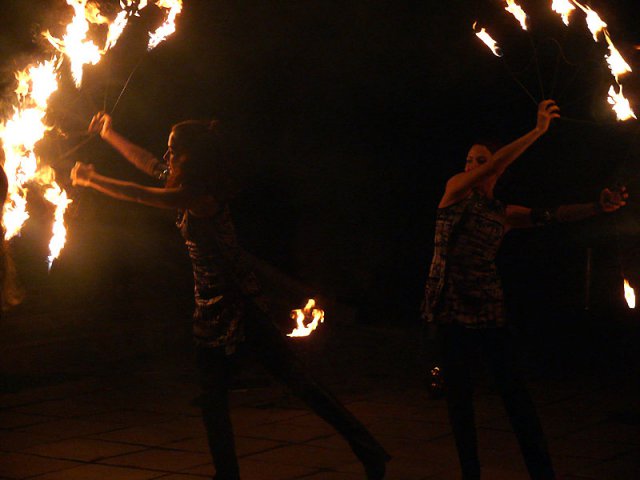 После зажигательных танцев нас ожидало не менее фееричное огненное шоу. Танго четырех танцовщиц с чашами, полет с веерами, энергичный синхронный танец с поями, горящий хулахуп и другие зрелищные трюки вызвали бурю положительных эмоций и неописуемый восторг.