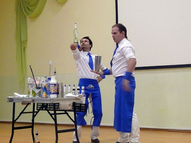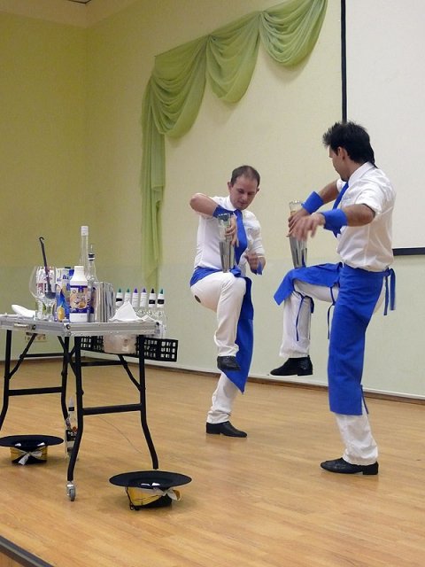 Вечером мы собрали друзей на банкет. Гости с любопытством наблюдали за действиями профессиональных барменов, которые устроили незабываемое шоу с исполнением барменских трюков, создав атмосферу настоящего праздника. Чемпион мира и России по флейрингу угостил всех желающих коктейлем, приготовленным во время выступления.