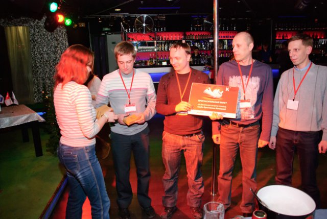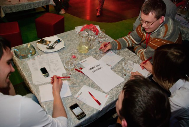 Участники турнира в Перми показали высший пилотаж в творческих заданиях организаторов мероприятия. Так, например, в одном из заданий партнеры составляли слова из слова «Процессоры», придумывали рекламные слоганы для принтеров Samsung и пели песни о продукции Lenovo. По итогам игры первое место получила команда «Смайлик», набрав 70 баллов, второе - «Мегатрон» (67 баллов), а третье - «Драйв» (56 баллов). Победители первого регионального отборочного этапа в Перми были награждены ценными призами, в том числе большим красным тортом с логотипом «Клуба Креативных Компаний».